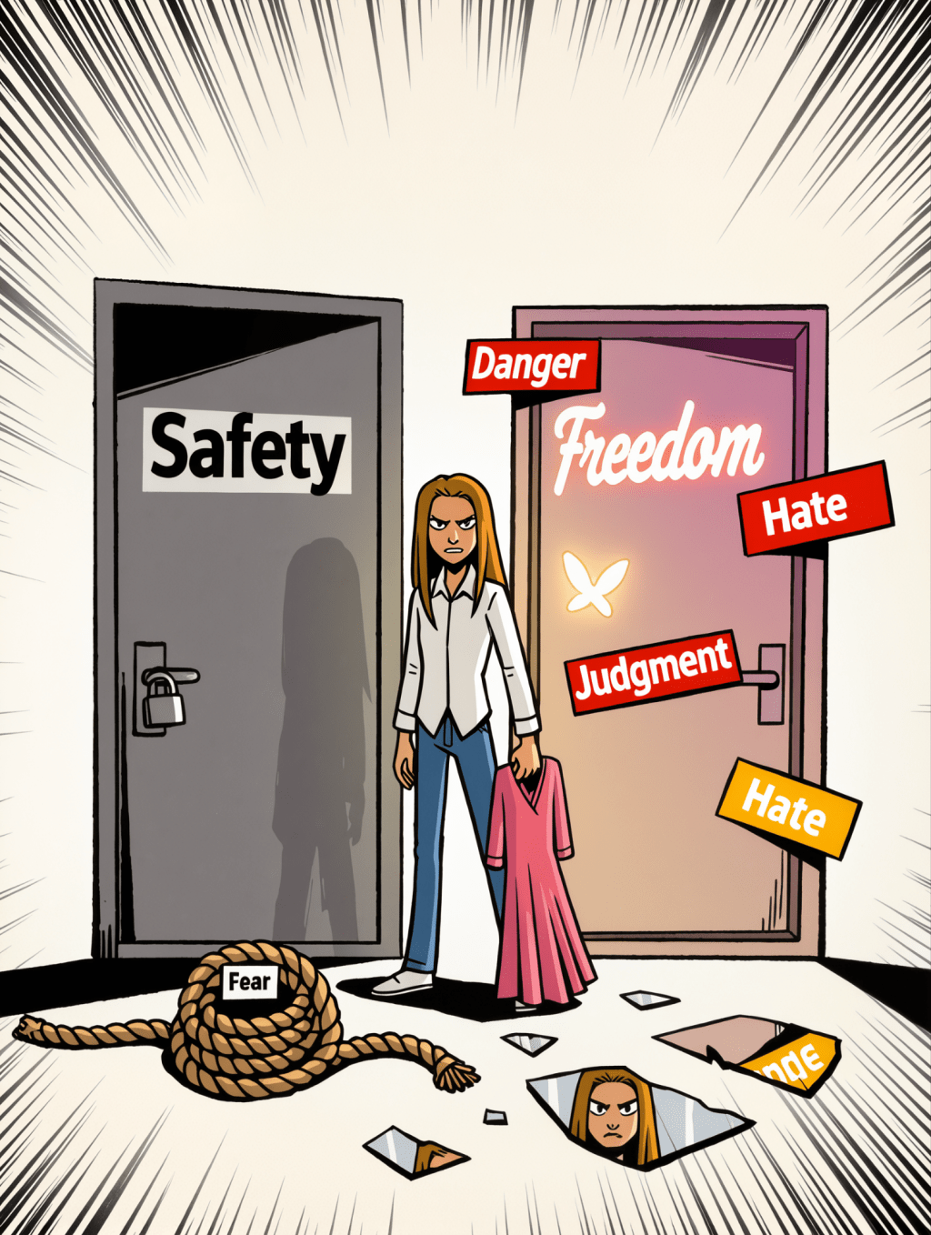 I want to leave behind the days of secretly dressing up and being afraid that people will see me — as if it’s some kind of crime.