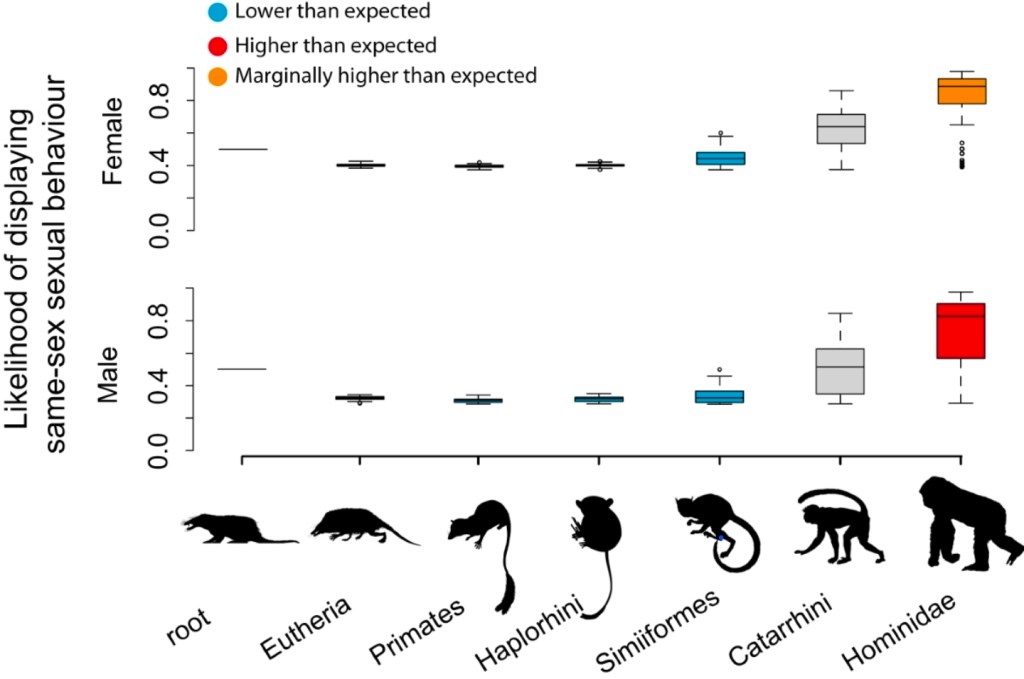 See Bailey & Zuk, 2020, The evolution of same-sex sexual behaviour in mammals, Biological Reviews.